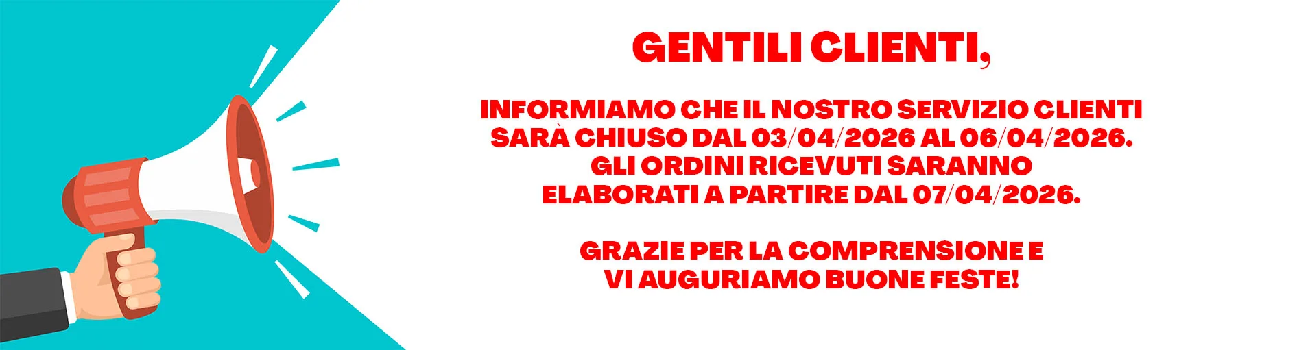 Informiamo che il nostro servizio clienti sarà chiuso dal 03/04/2026 al 06/04/2026.
